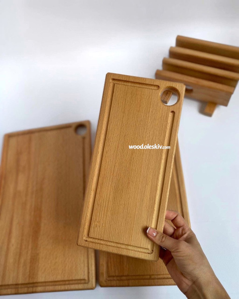 Набір з трьох дощок для нарізання, виготовлених із масиву бука. Кожна дошка відзначається високою якістю та довговічністю, а також зручністю в використанні. Компактний дизайн і натуральний матеріал роблять їх ідеальним доповненням будь-якої кухні.
