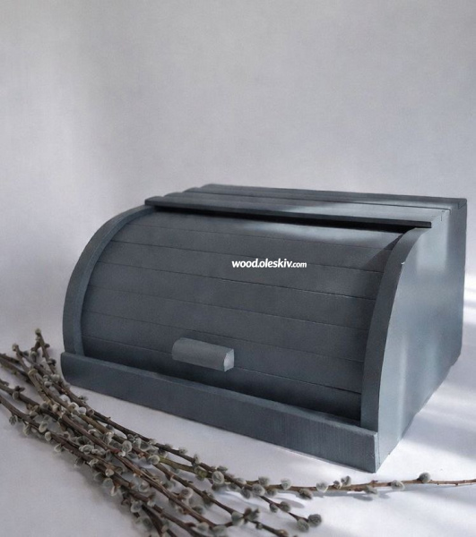 Стильна хлібниця з натурального дерева сірого кольору, яка зберігає хліб свіжим і ароматним, додаючи затишку вашій кухні