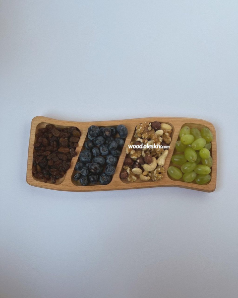 Це стильний та практичний аксесуар для сервірування, який дозволяє зручно розташувати різні соуси, горіхи, оливки чи інші делікатеси. Вона поєднує функціональність із естетикою, додаючи витонченості будь-якому столу.