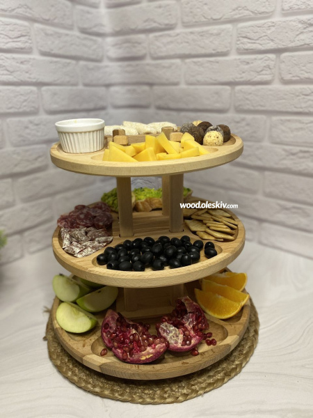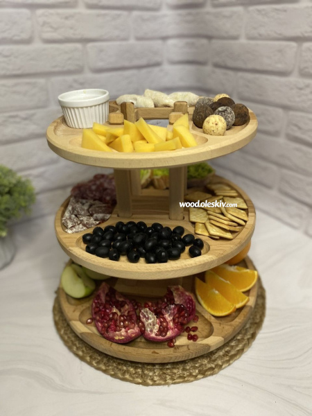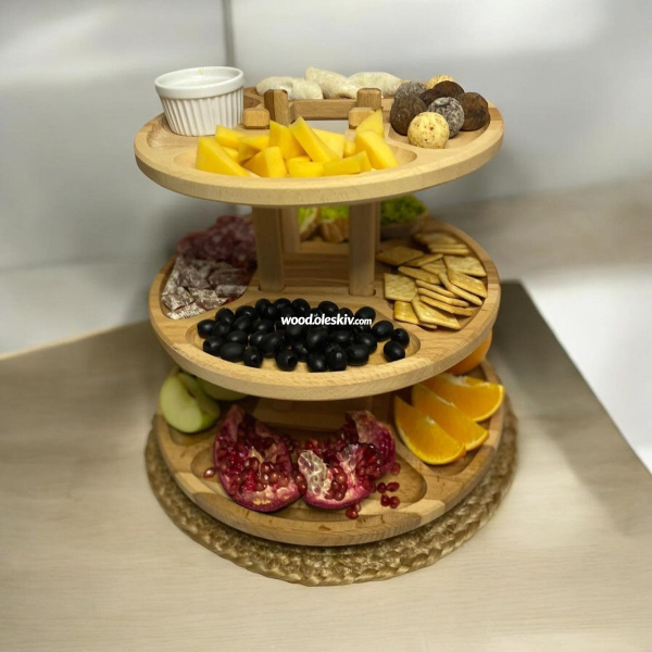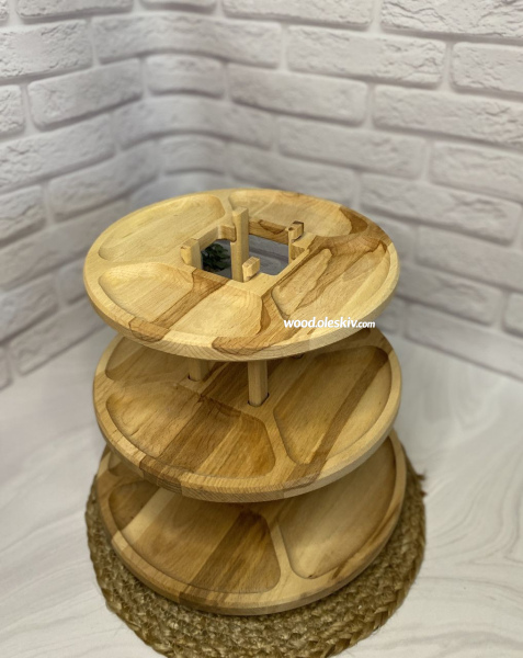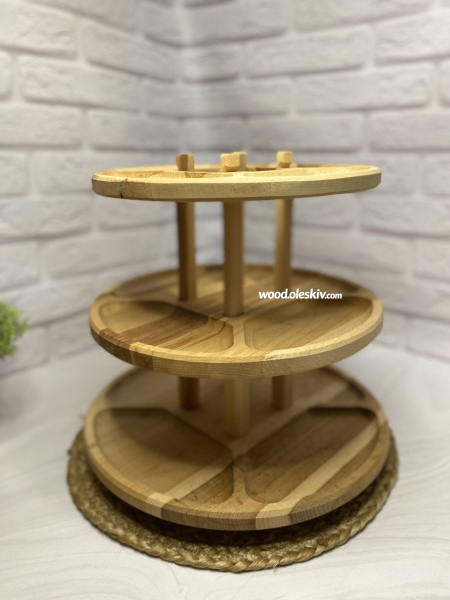 Столик з трьома ярусами. Матеріал – натуральне букове дерево, що забезпечує міцність та довговічність. Такий столик стане чудовим доповненням для будь-якого інтер’єру.
